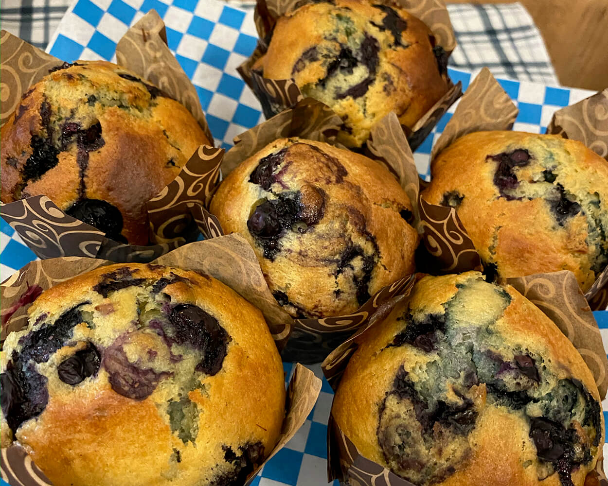 Our Farm Market features a wide range of blueberry goodies made with our own berries and local ingredients. Enjoy blueberry jam, blueberry jalapeño jam, creamed blueberry honey, and a variety of baked treats like pies, turnovers, fruit sticks, cheese danish, and muffins. In season, treat yourself to fresh waffles topped with homemade blueberry sauce and whipped cream—absolutely delicious!