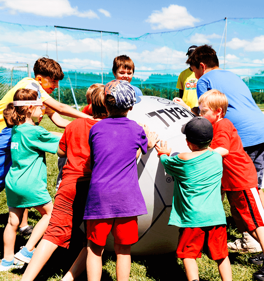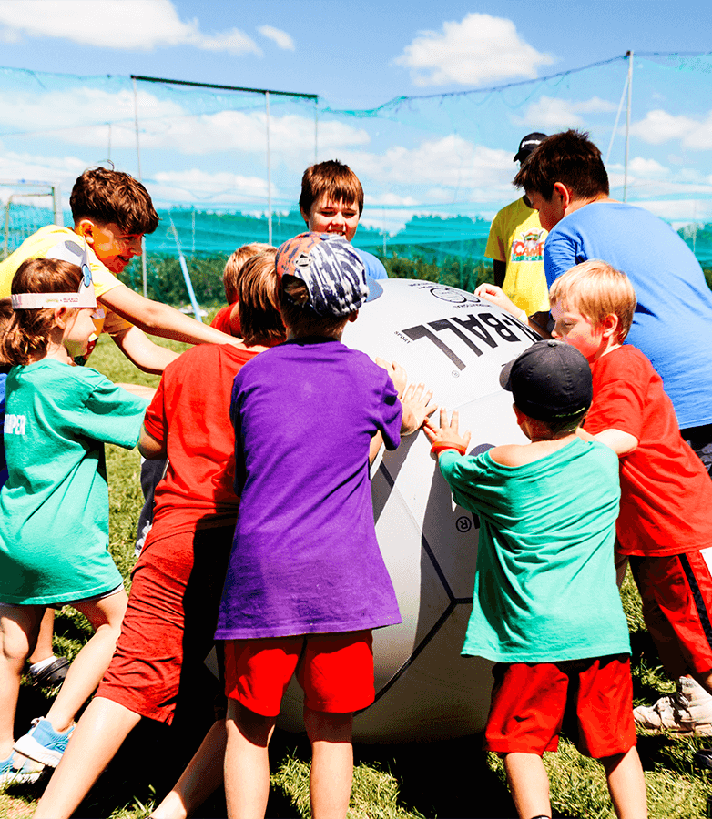 Introducing Kin Ball. Originating in Quebec, this giant sports ball brings a new level of fun and teamwork to the game. At Camp Kustermans, our enthusiastic staff are preparing a variety of Kin Ball activities that campers of all ages can enjoy.